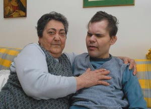Fernanda gli ha consacrato la propria vita. Sta con lui da sola al primo piano della palazzina Aler di via Rosselli a Tavazzano con Villavesco, in provincia di Lodi. Terzo di tre figli, nel giugno del ?61 subì danni al cervello a causa della vaccinazione contro la poliomielite. «Era normalissimo. Ma il giorno dopo la puntura ci fu il primo sintomo, uno scatto della testa. I medici di Lodi mi dissero che mi inventavo tutto, mi fecero passare per scema». Fu un luminare milanese a svelare il dramma: «Andammo al suo ambulatorio, 86mila lire di visita, tutto lo stipendio di un mese di mio marito ferroviere». Il verdetto: danni irreversibili al cervello, encefalopatia da farmaco. Giorgio non avrebbe mai parlato, il suo corpo si sarebbe sviluppato scollegato dalla mente. Impara a camminare, mangia solo se imboccato, ma resta in compagnia dei suoi fantasmi. «In 47 anni non ho mai avuto l´impressione che capisse qualcosa: è rimasto un neonato di sei mesi». «I dottori ci hanno spiegato che l´encefalite - aggiunge Furio, il fratello maggiore di 55 anni - gli ha bloccato il cervello: infatti non conosce l´aggressività, ogni tanto si dondola da solo come faceva sul cavallino».