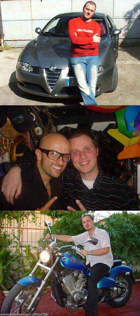 Ciao, se stai leggendo questa pagina allora significa ke vuoi sapre di + su di me! E allora sai ke ti dico? Ma pkkè nun 't fai è CXXZ tuoje? Skerzo! Nn vi offendete! Allora Partiamo dal principio! (E da dove vuoi partire? Dalla fine? Dirai tu! E pure hai ragione!) Sono alto 1,78 cm, sono biondo scuro e ho gli okki azzurro cielo. Ho 32 anni, ma fortunatamente tutti mi dicono ke nn li dimostro affatto, infatti nn me ne danno mai + di 24 (anke di galera!) Diciamo ke anke la testa è rimasta a quell'età. Penso ke bisogna sempre essere un po ragazzini nel cuore, aiuta a prendere la vita con + semplicità. Sono un tipo camaleontico... aspè ke è capito? Non sono verde e brutto come il camaleonte, solo ke sono un tipo ke si adatta a diversi tipi di carattere! infatti ho parekkie qualita', come anke parekki difetti! Ne vuoi sapere qualcuno? Allora... socievole, simpatico, allegro, scassapalle, incazzoso, dolce, romantico, passionale (e sottolineo passionale), maturo e bambino allo stesso tempo, pazzo ma sopratutto troppo buono (purtroppo) Dico purtroppo xkè parekkie persone se ne approfittano, ma mi sa ke nn riusciro' mai a cambiare! Ke altro volete sapere? Ma nn vi accontentate mai? Vabbuò! I miei hobbyes sono poki ma buoni: Il primo + ke un hobby è una vera e propria passione ke mi porto dentro sin da piccolo... i computers! Da quando avevo 6 anni e vidi x la prima volta quell'insulso giokino del tennis in bianco e nero ke a quei tempi era rappresentato da 2 mazzarelle ke rincorrevano una pallina quadrata in cui l'unico suono ke si sentiva era "bip-bip", da allora cominciai ad interessarmi dei computer! Oggi questa passione si è trasformata nel mio lavoro! (Mai abbandonare un sogno! Non si raggiungono mete se nn si osa partire!) Adoro la Formula 1 (Grazie di tutto Shumy!) Sono un maniaco dei videogioki, In particolare i cosidetti "sparatutto in prima persona". Per intenderci sono quei gustosi gioketti violenti e sanguinari dove devi ammazzare tutti con armi tipo motoseghe e asce in cui skizza sangue in tutte le direzioni... yeaaa!!!!!!!! Amo andare al cinema, il mio genere preferito? Ovviamente horror e fantascienza! Magari con una bella ragazza vicino ke si stringe a te quando ha paura! (maroooo comm so' Malat!) Infine ho una passione per le auto! Ne cambierei una al giorno (se potessi) Volete sapere pure ke makkina ho? Ma vuj e fatt vuostr nun v'è sapit fà? ;-) Cmq ho una (a mio parere bellissima) Alfa GT 1.9 JTD grigio antares (nn kiedetemi sto antares ke cazzo è xkè nn lo so nemmeno io!) Inoltre da un po di tempo grazie al mio migliore amico (Dino il Magnifico) che mi ha attaccato un po della sua passione x le moto mi ha portato all'aquisto di una bella Honda Shadow e di tanto in tanto insieme a lui mi vado a a fare qualke bel giretto di 2 o 300 Km!(quando nn gli va di camminare molto!) A Proposito di quel crapa pelata di Dino! Ke oltre ad essere il mio migliore amico è anke una persona straordinaria... vi consiglio di andarlo a trovare al suo locale, dove (dal giovedi alla domenica) lavoro anke io... quale? Non ditemi ke nn avete mai sentito parlare del Magnifico di Teverola? SACRILEGIOOOOO!!!!! Cmq vi do modo di rimediare... andate a dare un'okkiata alle foto sue, del locale e della bella gente ke lo frequenta su www.osteriailmagnifico.com, vi assicuro ke dopo nn potrete fare a meno di andarci! Casomai quando andate chiedete di me oppure se nn ci sono ditegli ke vi manda Carlo Bill Gates... lui capirà, e una bottiglia di vino omaggio nn ve la leva nessuno ;-)