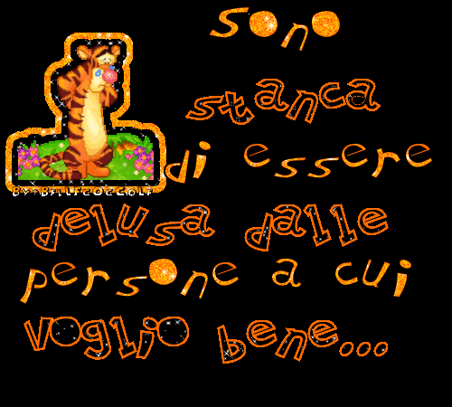 ...e un bel giorno ti rendi conto ke di lui non hai capito proprio nulla,ke nn sai cosa pensa,ke nn sai kosa fa.Ma soprattutto t rendi konto ke nn sai kosa prova xte, e prp ql giorno kapisci ke nn vuoi xderlo ma hai paura di dirglielo, e allora ti metti a scriverlo credendo ke lui leggerà e capirà.Pensavi di sapere tutto e di saper gestire la situzione a tuo favore,ma poi t rendi konto ke 6fregata,k è lui ke gestisce la situazione a suo favore e tu nn lo kapisci,ma lui a cui tnt tieni ti sta prendendo solo in giro,t sta sl usando x poi buttarti via e poi qnd lo capisci il mondo t crolla addosso,ma kosa puoi farci?Nulla,sl aspettare,aspettare k il tempo guarisca le ferite provokate da lui.L'unica soluzione è parlargli,e prima o poi dovrai farlo, ma nn ora,xk nn hai coraggio, e se nn hai il coraggio blog modificato il: 03/01/2007 17:59:08 |